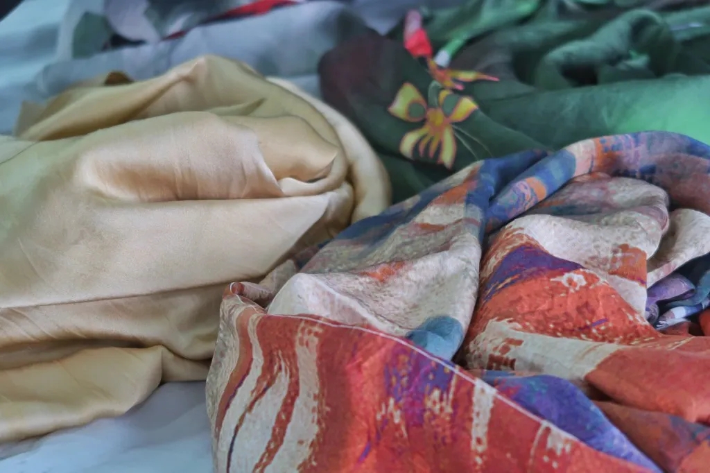 陈宇岳教授团队研发的抗病毒抗菌丝绸面料。 据陈宇岳介绍,目前国内外普遍采用的抗菌整理技术,虽然可以有效实现天然纤维的抗菌,但其主体技术主要局限于对纤维材料表面加工来实现,很难达到功能的长效性,在耐洗牢度上存在不足。而此次最新的科研成果采用了最先进的纳米银组装技术,通过银离子向纤维内部的定向渗透,再进行原位还原,实现了在纤维内部的纳米银组装,从而有效解决了耐洗牢度这一难题,并实现了高效抗病毒抗菌功能。这项技术适用于棉质、毛质、真丝、化纤等多种材质纺织品,产品可广泛应用于口罩、围巾、内衣及家纺产品,具有广阔的市场前景。