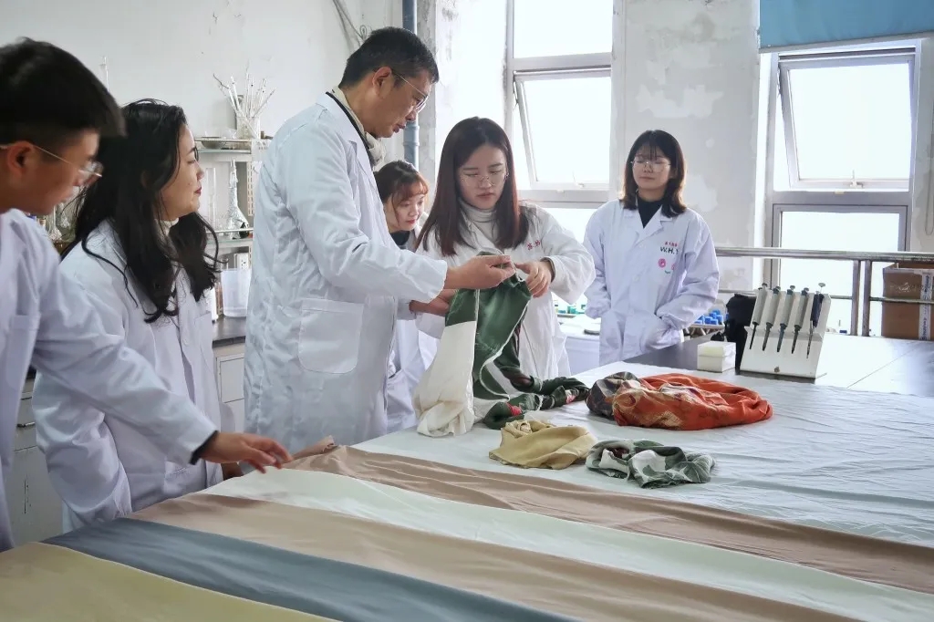 苏州大学纺织与服装工程学院陈宇岳教授在指导研究生开展科研。 此次研发的抗病毒抗菌纺织品经国家权威机构测试,产品对H1N1、H3N2等各类病毒的灭活率在99.7%以上,对白色念珠球菌、大肠杆菌、金黄色葡萄球菌等细菌的抗菌率均达到99%以上,并且这种新开发生产的全棉针织抗病毒抗菌纺织品具有持久耐洗性。该纺织品在自然条件下放置4个月,再次经第三方权威测试机构专业标准洗涤50次后,其抗菌效果依旧在99%以上,充分证明了抗病毒抗菌的显著效果,有效解决了面料抗病毒抗菌的长效性难题。