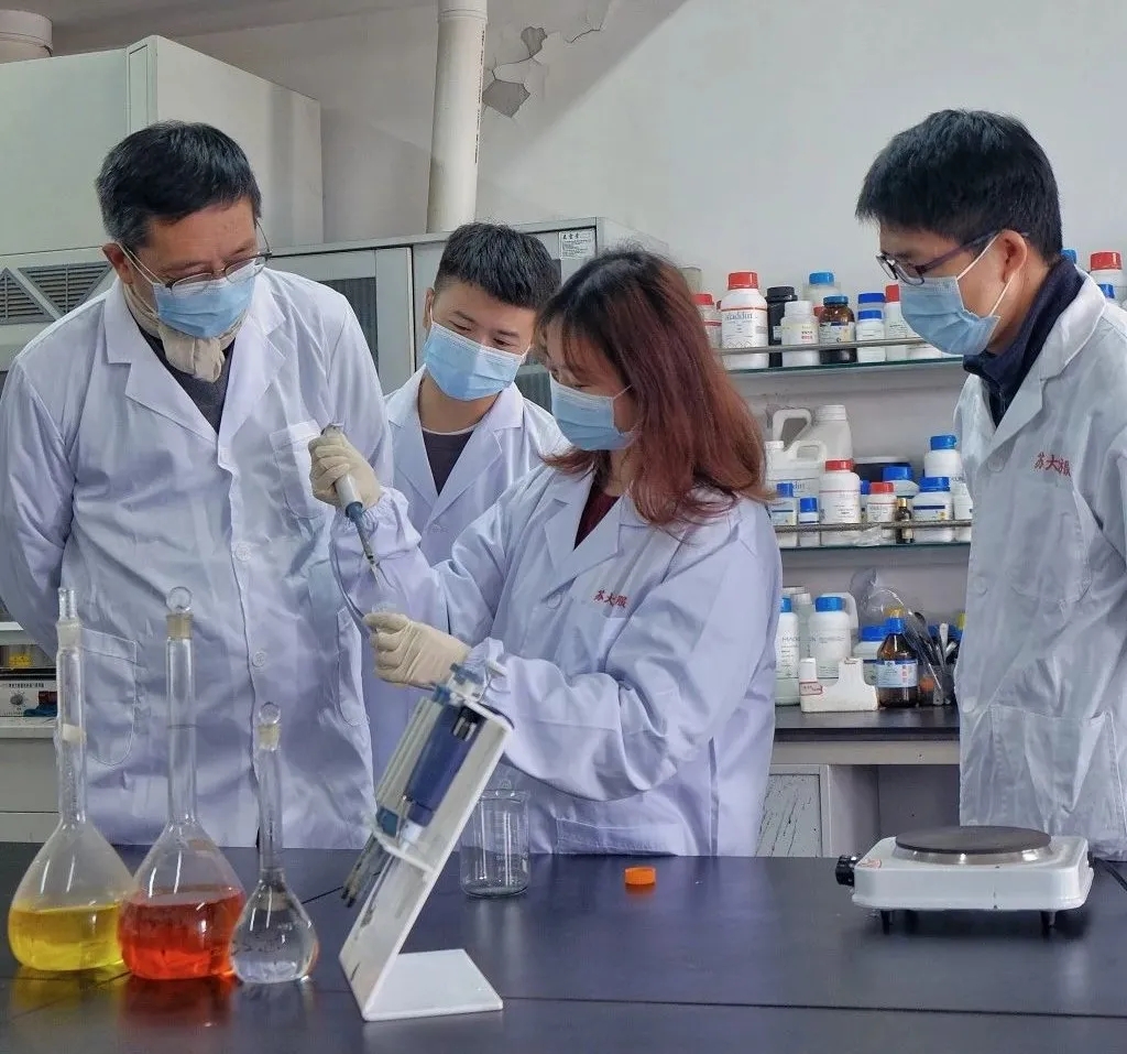苏州大学纺织与服装工程学院陈宇岳教授团队在做抗菌抗病毒纺织物研究。